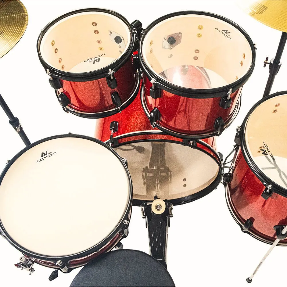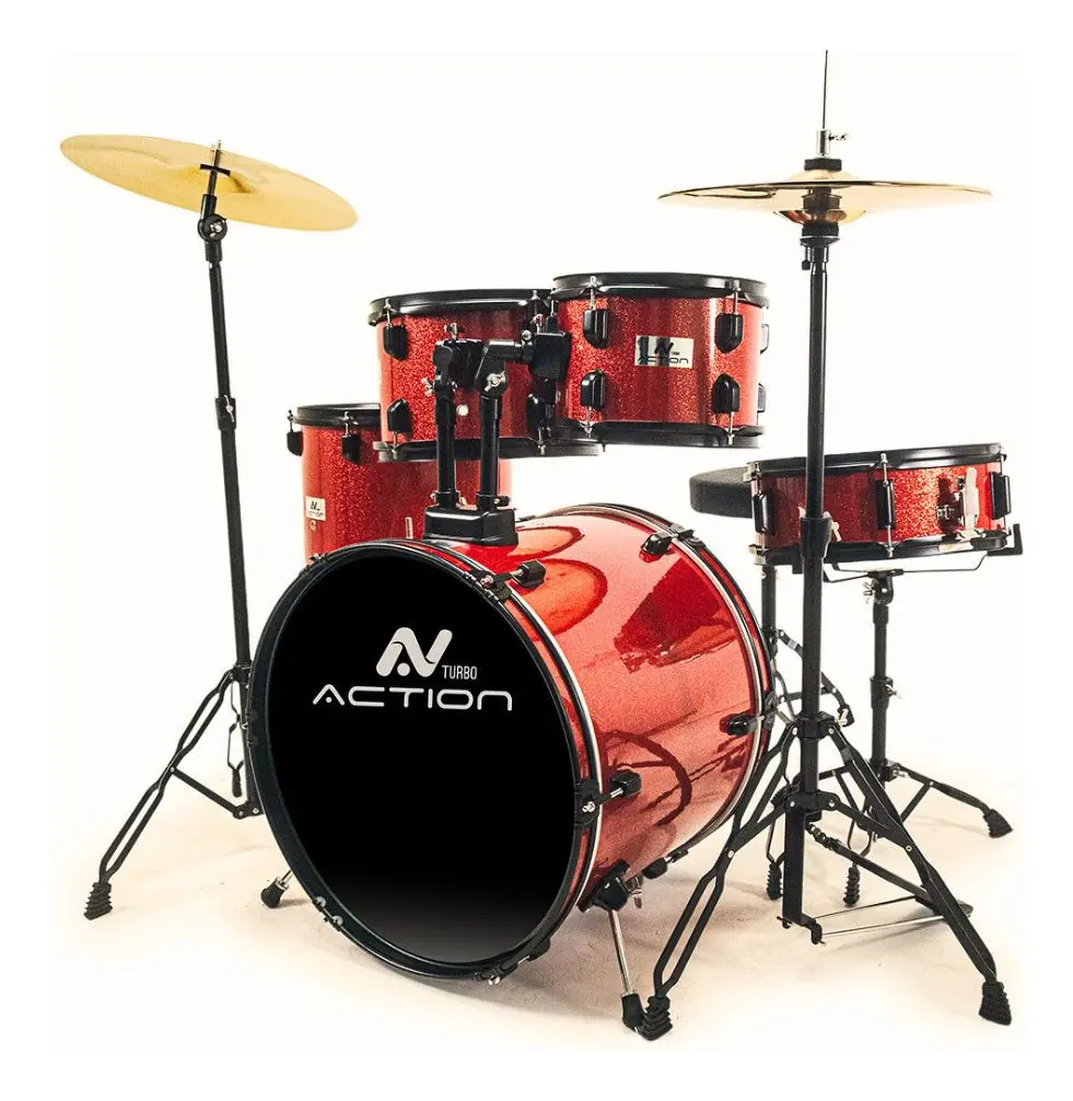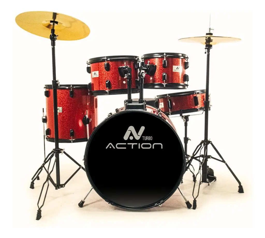 Bateria Turbo Action – A Escolha Perfeita para Sua Música! A Bateria Turbo Action é um instrumento que une qualidade excepcional e um custo-benefício imbatível! Se você é um baterista iniciante ou um músico experiente em busca de um aliado, esta bateria é a escolha que elevará suas performances. Qualidade e Durabilidade em Cada Batida Construída com cascos em Poplar de 7 mm de espessura, a Turbo Action oferece uma sonoridade poderosa e envolvente. Seu acabamento em PVC não só garante uma aparência marcante, mas também resistência, ideal para os palcos mais exigentes. A ferragem preta com pés duplos proporciona a estabilidade necessária, permitindo que você se concentre no que realmente importa: a música! Versatilidade que Se Adapta a Você Com um conjunto completo de tambores, a Turbo Action inclui: Bumbo: 22” x 16” com múltiplas afinações. Tons: 10" x 7" e 12" x 8" para uma resposta precisa. Surdo de chão: 14” x 14”, perfeito para um som encorpado. Caixa: 14” x 6”, com um sistema automático do tipo “Trava” para máxima praticidade. Conjunto Completo para Performances Incríveis A Turbo Action não é apenas uma bateria; é um kit completo que inclui: Máquina de chimbal com pés duplos para maior estabilidade. Pedal simples de bumbo que garante eficiência e resposta rápida. Um conjunto de pratos em latão, proporcionando um timbre brilhante que se destaca em qualquer música. Qualidade Sonora e Estilo Moderno Você vai se surpreender com a resposta sonora das peles filme simples, que garantem uma projeção impressionante. Cada batida é clara e precisa, permitindo que você se expresse musicalmente com total liberdade. O design moderno e arrojado da Turbo Action não apenas impressiona no palco, mas também se torna parte da sua identidade musical. O Que Vem na Caixa: Kit de Ferragens: 1 Banco, 1 Estante Reta, 1 Máquina de Chimbal, 1 Pedal Simples, 1 Estante de Caixa. Conjunto de pratos em latão, chave de afinação e manual do proprietário.