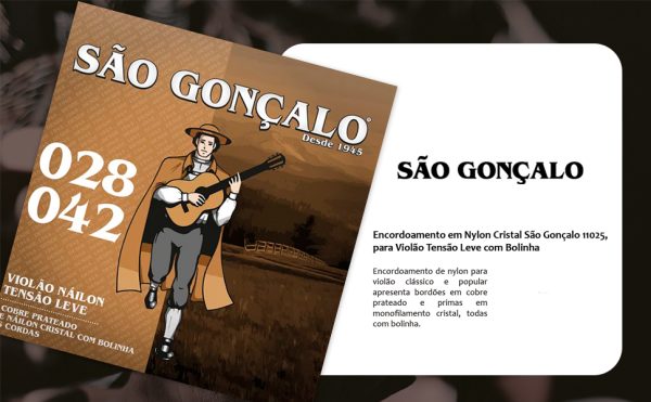 A São Gonçalo atua no mercado brasileiro de instrumentos e acessórios desde 1918 e essa tradição trás as cordas de violão que você confia. Os produtos São Gonçalo são fabricados no Brasil, acessíveis e garantem brilho e qualidade no seu som, além de oferecerem um dos melhores custo benefício do país.