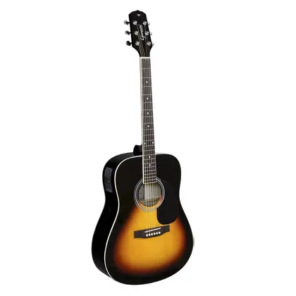 Modelo: Violão Dreadnought Eletroacústico Aço Tampo: Basswood Faixa e fundo: Agathis Braço: Okoume com tensor bi-direcional Escala: Rosewood Trastes: 21 em Alpaca Marcação: Madrepérola artificial (escala) e bolinhas pretas (lateral) Escudo: Preto Tarraxas: Blindadas cromadas 3+3 Captador(es): K-8100 para rastilho Equalizador: GS-3T Controles: Volume, Bass, Middle, Treble, Chave Phase e Tuner Saída: P-10 Acabamento: Satinado Cor: Vintage Sunburst Satin (VSB-S)